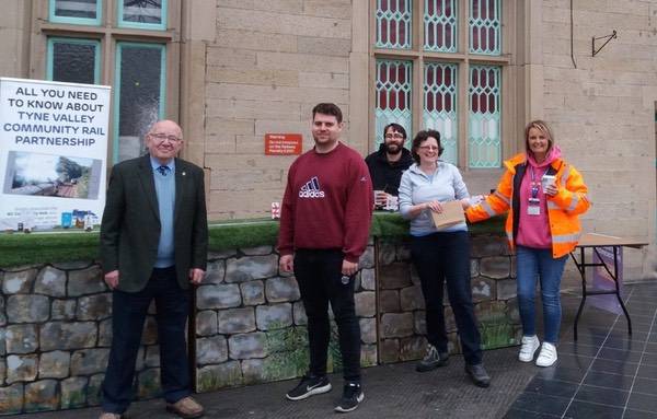 A big day for the Tyne Valley Community Rail Partnership. It has been the launch with the guests including two MPs of a tri-partite partnership: Ourselves, Newcastle College Rail Academy and Cross Country. The months ahead will see Rail Academy students undertaking practical tasks along the line. Cross Country has funded a classroom and this superb photo montage. In shot is Haltwhistle and the three people (L to R) are TVCRP officer Fiona Forsythe, Chris Leech Cross Country's Business Community Manager and Anna Weeks Northern's North East Region. Commercial Manager.